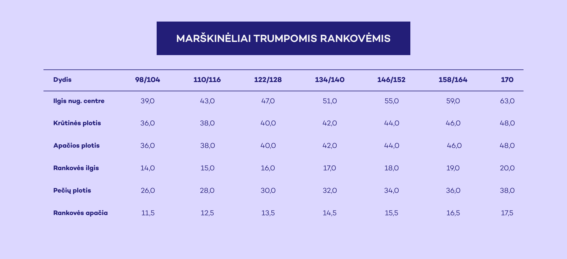 Pasirinkti vaiko dydį