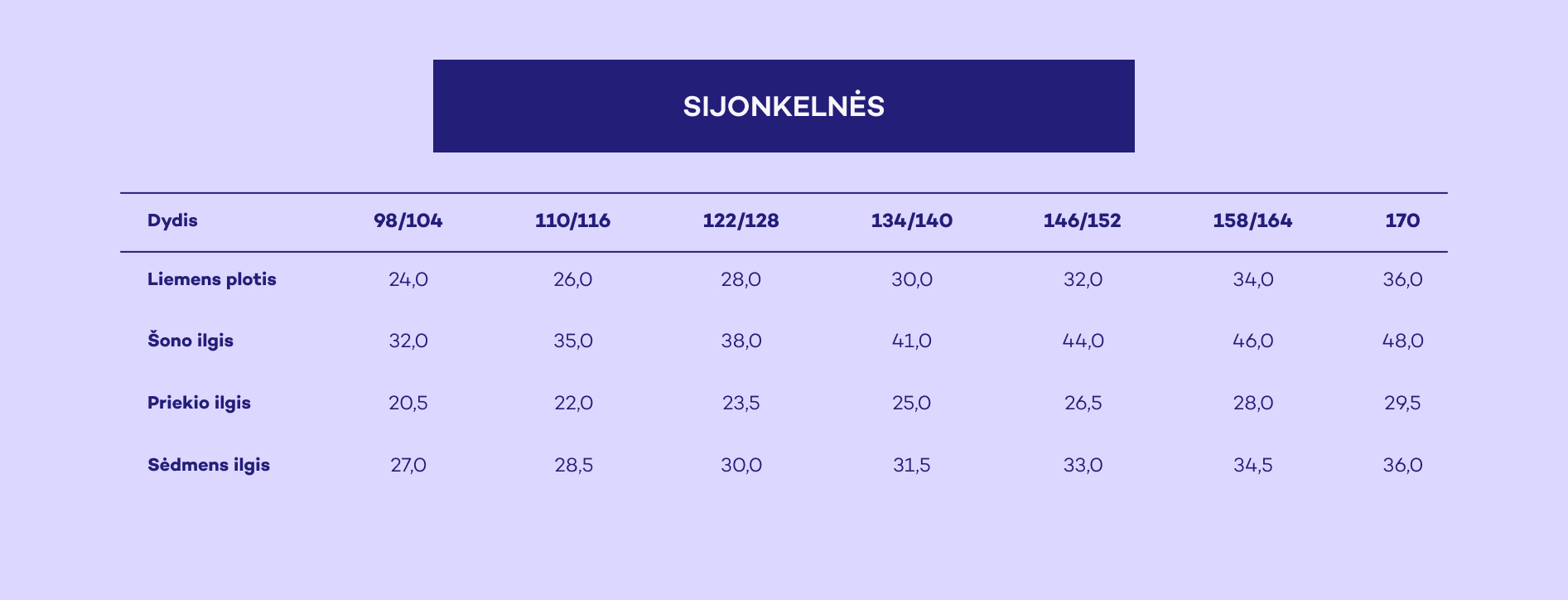 Pasirinkti vaiko dydį